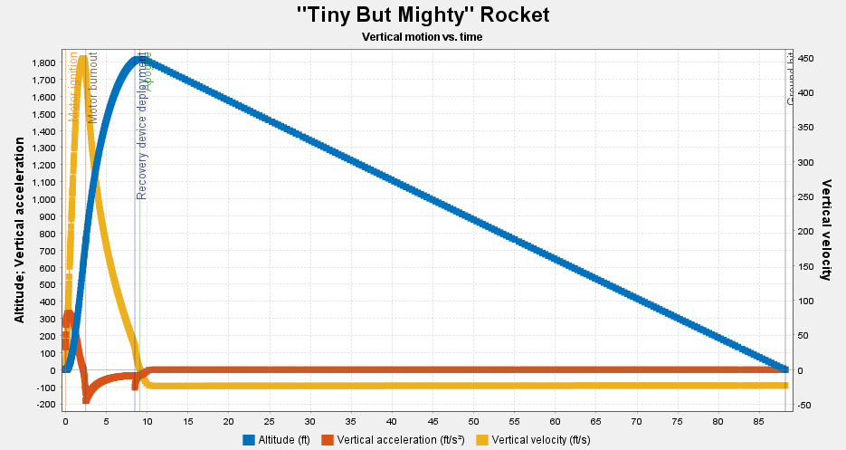 Action: To accomplish this I picked a LOC Precision 4″ Goblin rocket kit for my Level 1, the kit comes with all the necessary things to get your Level 1 certification but I of course needed to build it, figure out which motor I would use, and do on launch site simulations like finding my rockets burn rate (optimum delay), apogee, stability and center of pressure and gravity. The motor I chose was the (I motor) since it fits in my motor mount and the I and H motor have little to no difference. On launch day, I completed all pre-flight safety checks and successfully launched my rocket with no damage, it reached max apogee around 1817ft.